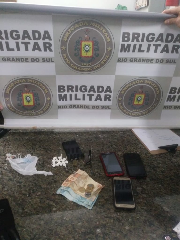 Na madrugada deste domingo (28/07/2019), a BRIGADA MILITAR realizou a abordagem de um veículo no centro da cidade, após várias denúncias que os tripulantes estavam traficando. Foi realizada a busca pessoal nos ocupantes e encontrado com uma menor de idade 15 buchas de maconha e dinheiro, está informou que o material apreendido era de seu namorado, identificado com iniciais L.S., 29 anos, vulgo azeitona, que admitiu que ao ver a presença da polícia, solicitou que a menor guardasse o entorpecente.