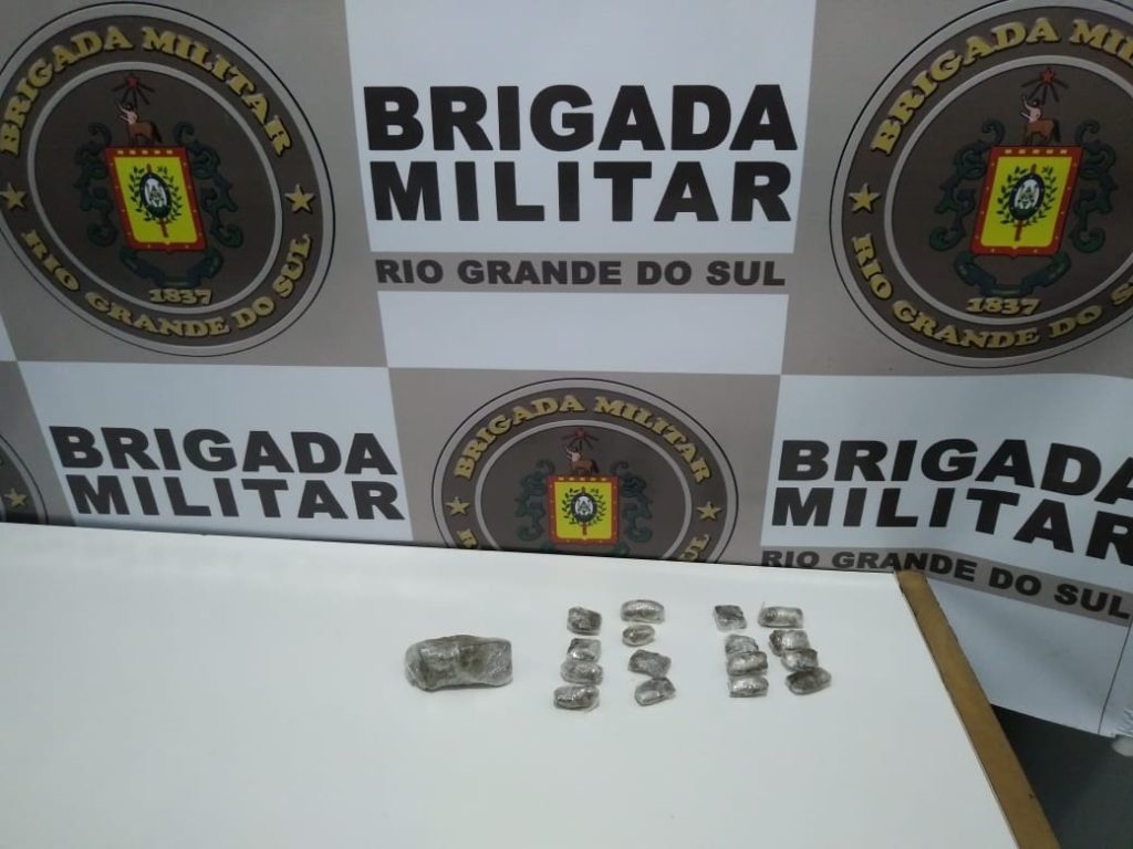 Nesta madrugada (30/07), por volta das 01h15min uma guarnição da Brigada Militar prendeu um homem e apreendeu um adolescente por tráfico de drogas. A prisão ocorreu no bairro Frei Olímpio, após abordagem dos envolvidos, sendo apreendido com ambos 01 porção grande de maconha pesando 23,8 gramas e outras 16 porções pequenas pesando 31,34 gramas, totalizando 55,14 gramas de droga apreendida.