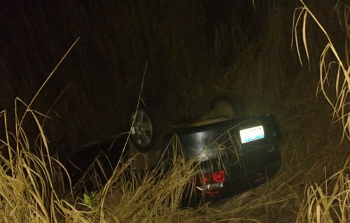 Por causas desconhecidas, um veículo Chevrolet Prisma saiu da pista e capotou nas imediações da divisa entre as localidades de Vista Alegre e Vista Nova.