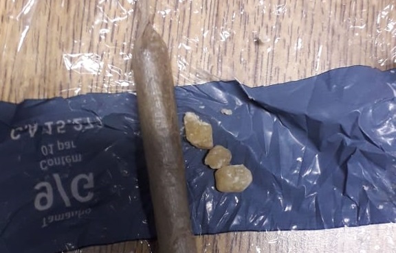 O condutor do veículo não obedeceu voz de abordagem, dificultando sua revista pessoal e identificação, passando a desacatar a guarnição. Diante da situação foi necessário o uso moderado da força, porém o homem foi algemado com muita dificuldade pois resistiu a algemação. Na busca pessoal foi localizado no bolso da calça do acusado, três pedras de crack e um cigarro de maconha.