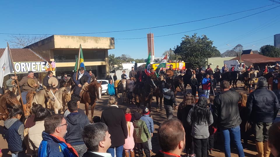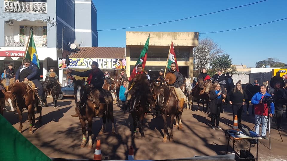 Presença do Prefeito Clairton Carboni, Vice-prefeito Valdir Machado Soares, Secretários Municipais, vereadores, representantes de entidades tradicionalistas, alunos e professores das escolas da rede municipais de ensino e comunidade em geral.