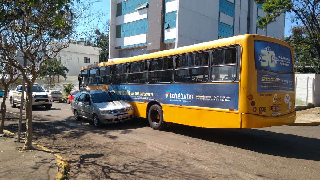 Carro e ônibus colidem no Centro de Frederico Westphalen