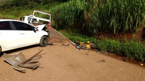 A colisão envolvendo um Ford Fiesta e uma motocicleta Honda Twister, por volta das 11h30min.
