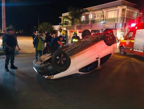 Motorista fica ferido depois de capotar veículo no Centro de Ijuí