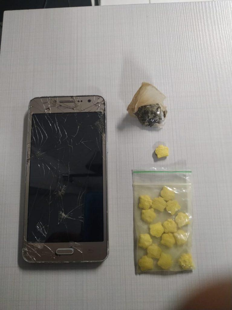 Com a chegada da guarnição ao local foi constatado que o indivíduo João Marcos da Silva Lopes, transportava consigo uma quantidade de 16 comprimidos semelhantes a ecstasy e uma porção de substância semelhante a maconha. O entorpecente foi recolhido pelos populares que estavam no local e entregue a guarnição.