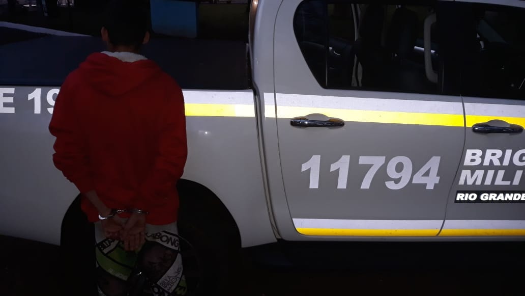 Na tarde de quarta-feira (07/08) uma guarnição do Pelotão de Operações Especiais recebeu denúncia de que um indivíduo vestindo moletom canguru vermelho estaria nas escadarias da quadra de areia do Parcão vendendo drogas. Foi realizado buscas à pé pelo interior do Parcão e identificado o suspeito, com o mesmo foi apreendido 12 porções embaladas de maconha.