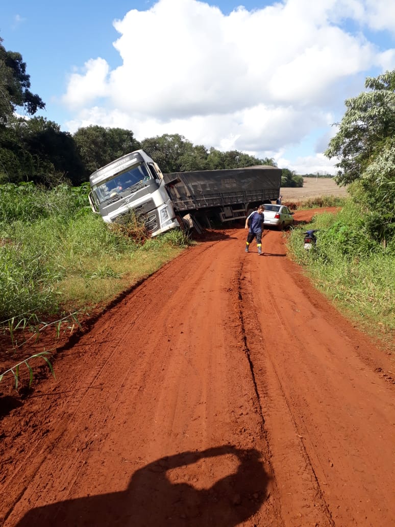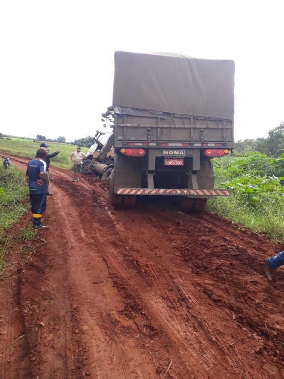 Na tarde desta quarta-feira (29/05) uma carreta carregada de calcário caiu em um bueiro localizado na estrada vicinal entre as localidades de Vista Alegre (Redentora) e Pedro Garcia (Braga).