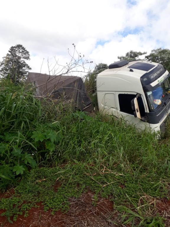 O bueiro fica logo após uma curva e tudo indica que a carreta tenha deslizado para dentro do canal o que resultou em apenas prejuízos materiais.