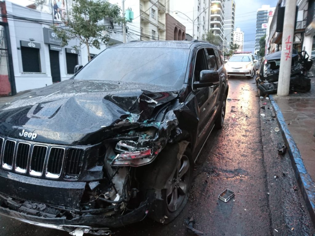 Um motorista foi preso após causar um acidente no centro de Passo Fundo, no início da manhã desta segunda-feira (12).