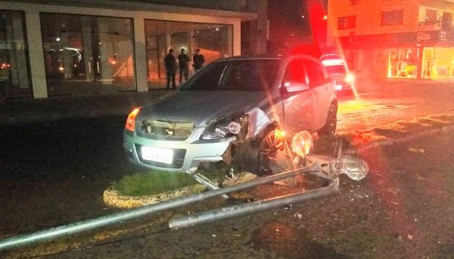 Por volta das 23h45min da noite de domingo o condutor de um GM Vectra hatch, com placas de Santa Catarina, seguia sentido bairro/centro e teria invadido o canteiro central da avenida 7 de setembro, nas proximidades da empresa Quim, derrubando um poste de iluminação pública. O veículo ficou suspenso no canteiro devido estragos mecânico.