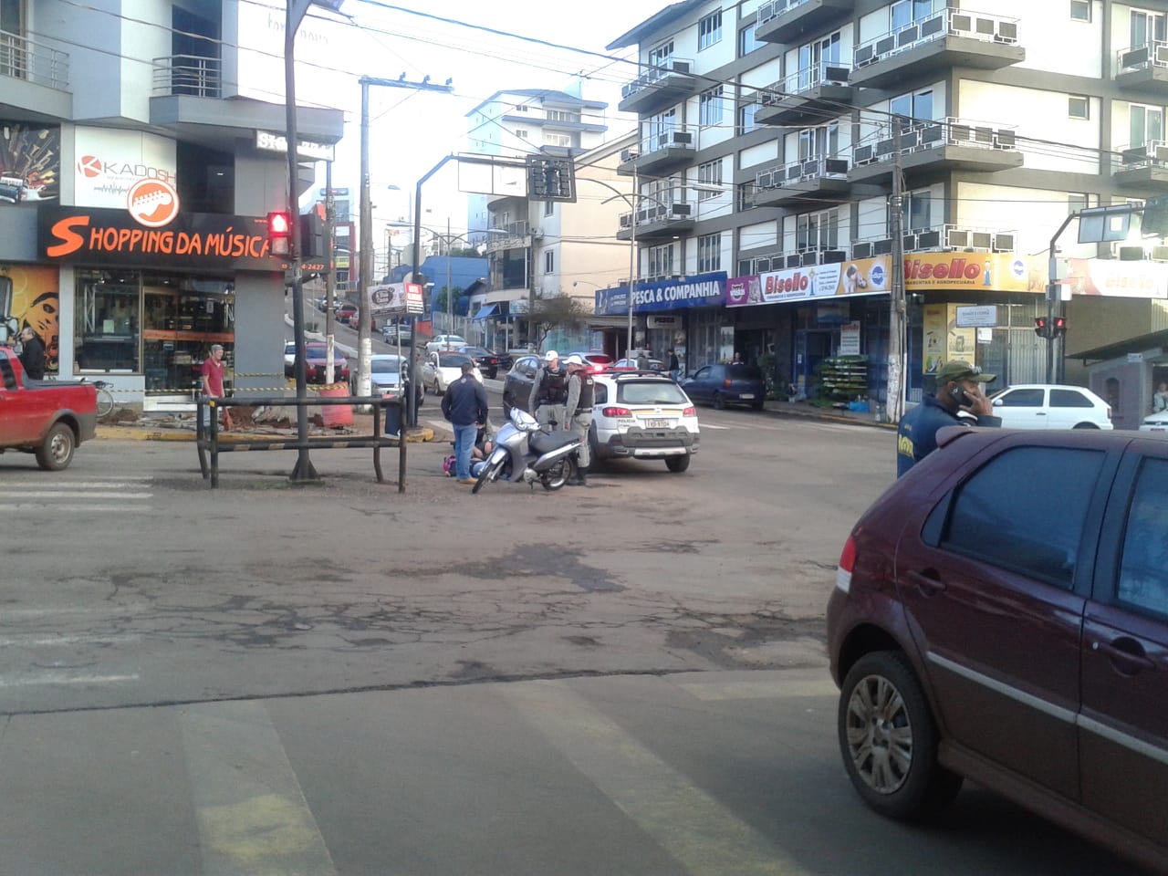 A colisão ocorreu na avenida João Muniz Reis, nas proximidades da Estação Rodoviária de Frederico Westphalen, e envolveu uma Biz e um veículo Fiat Palio.