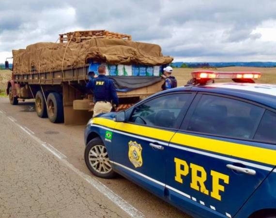 A Polícia Rodoviária Federal (PRF) e a Brigada Militar (BM) realizaram a apreensão de um caminhão que transportava cigarros contrabandeados do Paraguai na tarde desta quarta-feira (27).