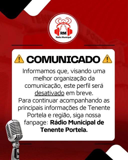 Mas fique tranquilo! Na nossa fanpage Rádio Municipal de Tenente Portela, você pode acompanhar tudo sem limites — a página é ilimitada e permite que muito mais pessoas recebam nossas informações diariamente.